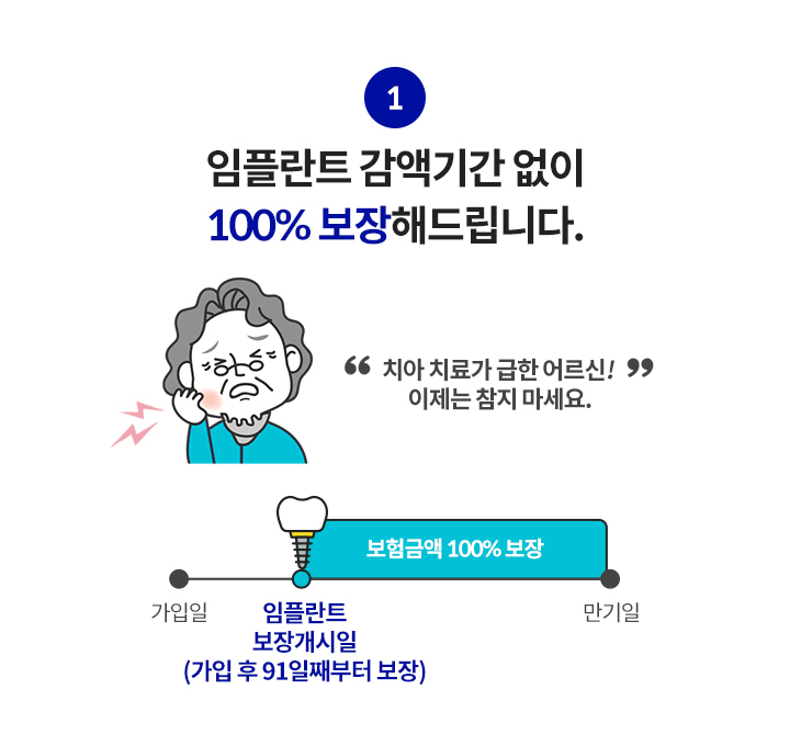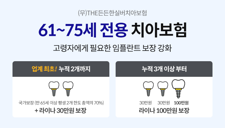 피보험자가 보험기간 중 치아우식증(충치), 치주질환(잇몸질환) 또는 재해를 직접적인 원인으로 치과치료보장개시일 이후에 최초로 영구치 발거를 진단확정받고 해당 영구치를 발거한 부위에 임플란트 치료 를 받았을 때 (영구치 발거 1개당 지급하며, 연간 3개를 한도로 함) |